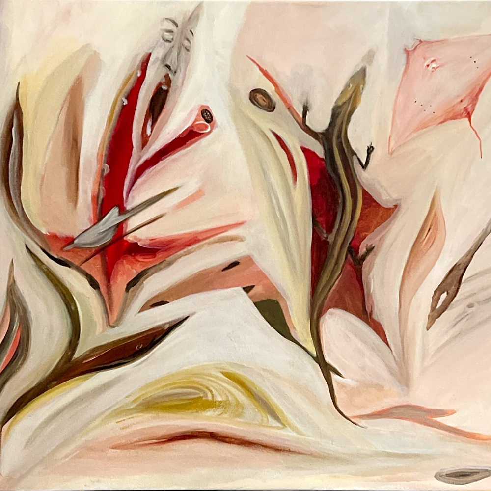 מרגע המגע הראשון, הקנבס נפתח כמו שער — והיצורים הופיעו מעצמם. דמויות של זיכרון, אינסטינקט ואנטומיה סמויה צמחו מתוך הצבע, כאילו נקראו לבוא. זהו מרחב קרוע בין גוף לטבע, בין פצע ללבלוב. מקום שבו האדום הופך לפעימה, לרעידה, להתעוררות.