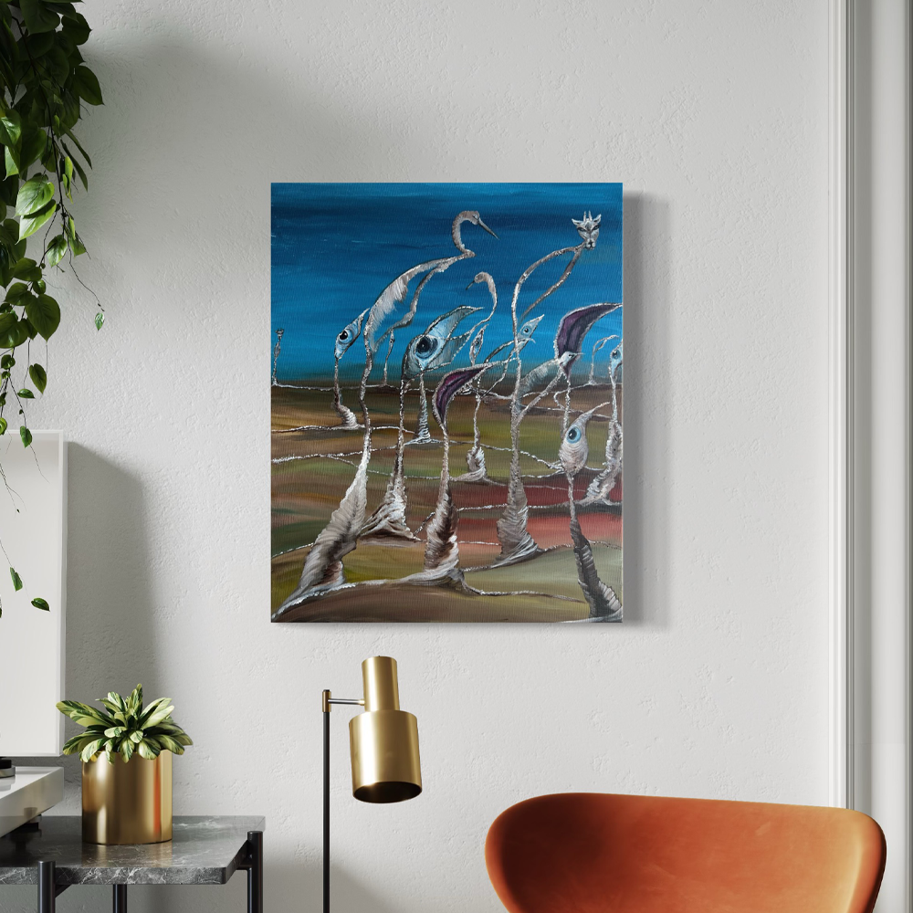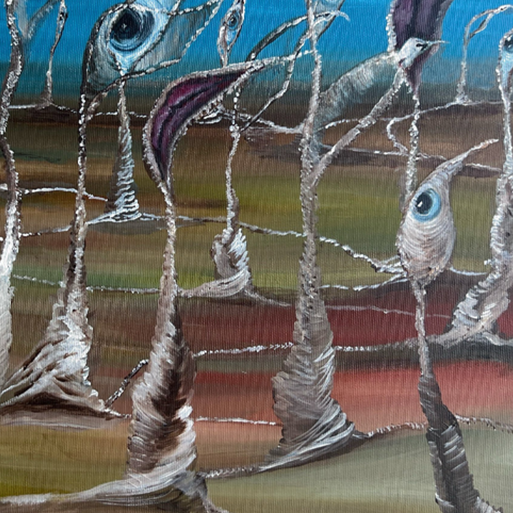 הן אינן שייכות לא לאדמה ולא לשמיים.להקה ברוח —עיניים נודדות, גפיים מפותלות, נישאות בזרם דומם.אין להן יעד, רק ריקוד.זיכרון של משהו שנראה פעם, אולי בחלום.