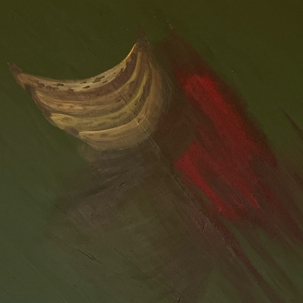 ארבע בננות כסמל לטקסי ילדות, לאחיזה במשהו טהור, נחות בבריכה מדממת בתוך היער האפל.
