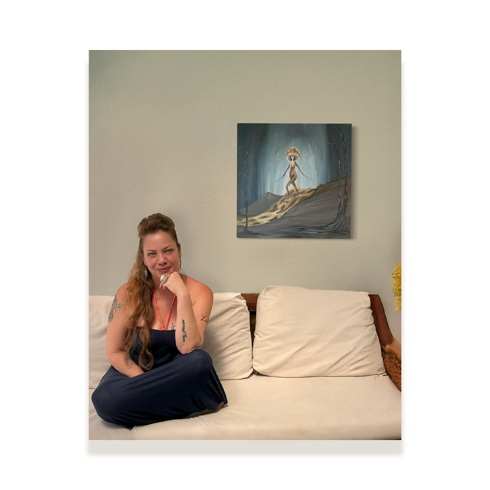 האמנות שלי היא המקום בו השתיקה מקבלת קול. מקום בו הזיכרון חוזר ברסיסים — לא במילים, אלא ,בצבעים. אני מציירת פנטזיה, אבסטרקט וסוריאליזם רגשי, שבהם הנראה והסמוי נפגשים. אני אוהבת לשחק עם מה שרואים ומה שמתחבא מתחת לפני השטח. כמו רשת שמחברת הכל, חוט השני שלי